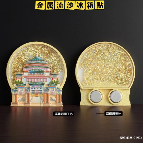 景区文化创意冰箱贴 金属立体纪念礼品冰箱贴 金属流沙冰箱贴